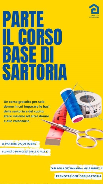 Un corso per imparare le tecniche base del cucito? Abbiamo anche quello! Ogni lunedì dalle 14 alle 16 e mercoledì dalle 10 alle 12.