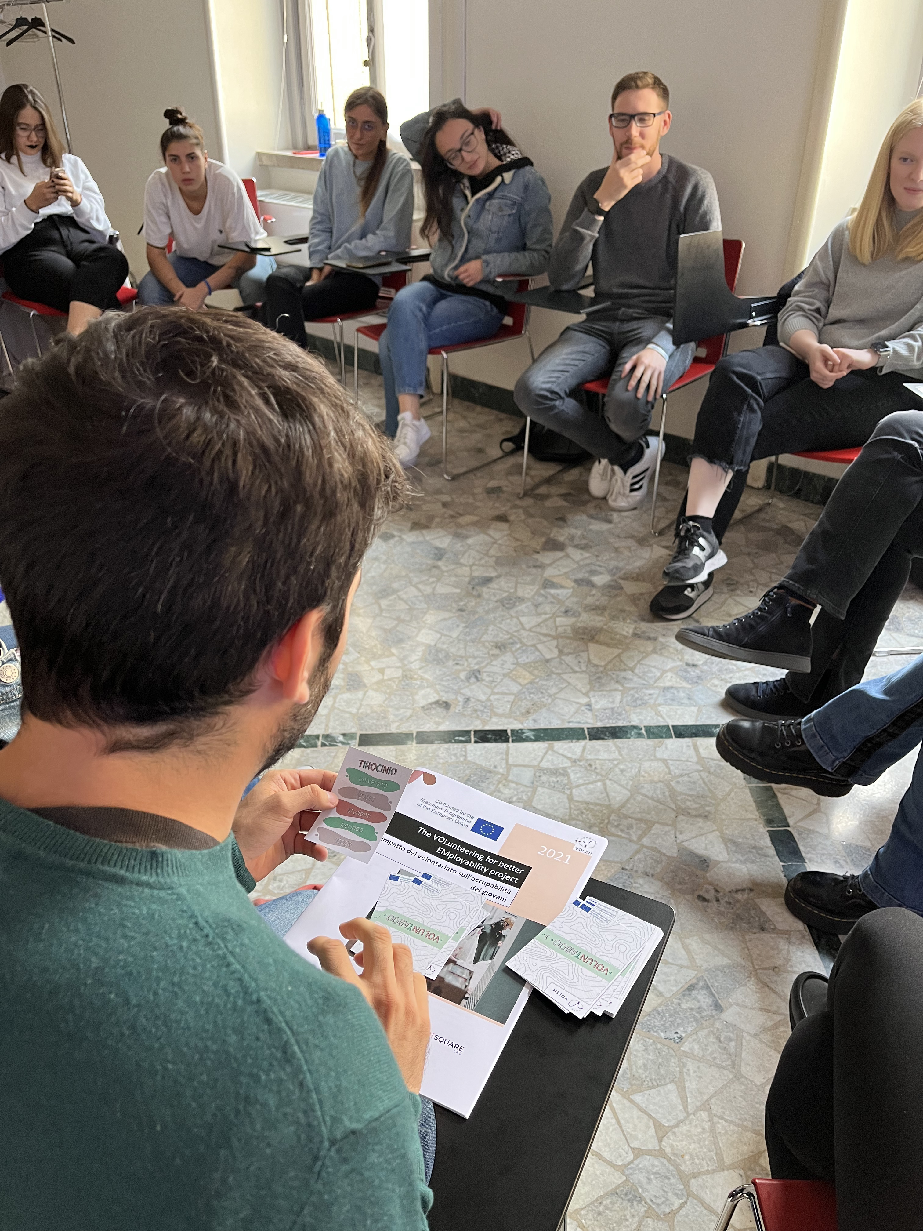 Then, we showed the students the second output, a toolbox for promoting volunteering. This toolbox is aimed at host organisations and the youngsters themselves, and includes a useful guide to introduce what is meant by volunteering, the various divisions of volunteering and why it is important to do such an experience, the main purpose being to make them learn that at the end of the course, all volunteers acquire skills that can be used in the working environment. The toolbox also contains two pedagogical games centred on the same theme and a graphic kit useful for promoting volunteering.