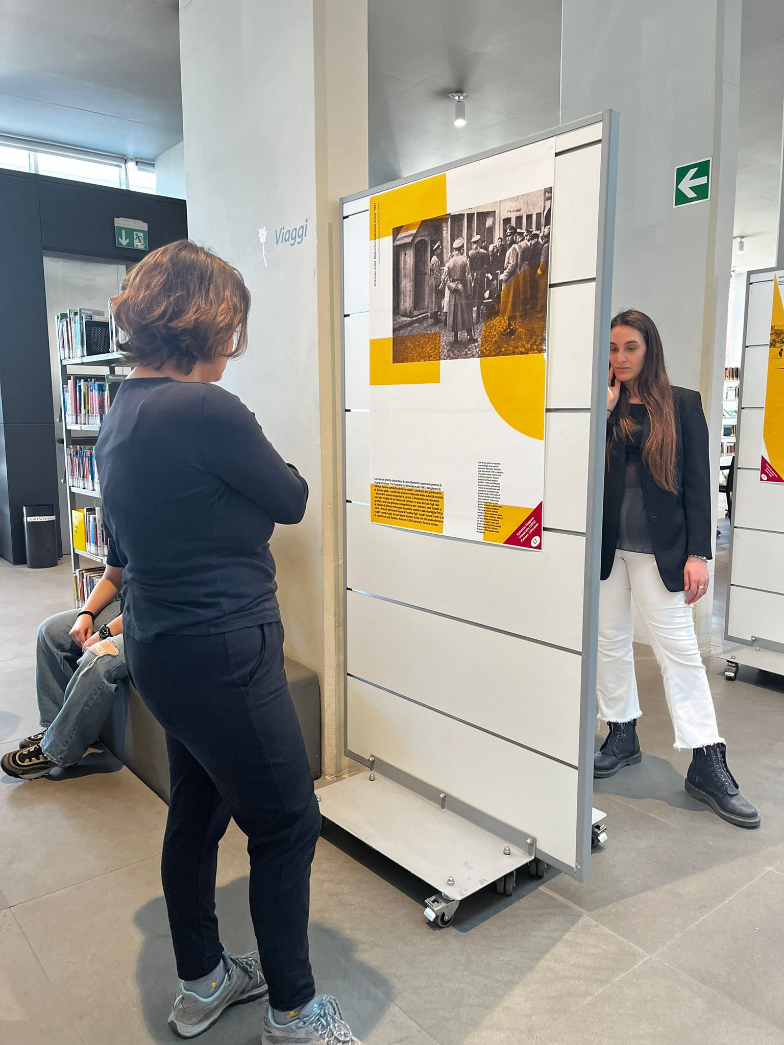 The exhibition itinerary is made up of images, texts and extracts from video interviews collected from the various partner countries on the subject of discrimination, treated both from a historical and contemporary point of view. In fact, each partner interpreted the topic, now giving greater prominence to a historical-scientific reading of the selected images, now moving towards a more personal and subjective reading. To collect and select the materials on display, the Municipality of Cinisello Balsamo involved a class of local high schools through PCTO-Paths for Soft Skills and Orientation. During three days of workshops organized with the Museum of Contemporary Photography, the students carried out group activities and conducted research on the themes of the project. The moments of reflection on historical discrimination and critical reading of the images were preparatory for the co-conduction of video interviews with people who have suffered discrimination of various kinds or are spokespersons for it. Once they got to the heart of the selection of images and video extracts intended for the exhibition, the students were guided through the processes of curation, communication and guided tours.