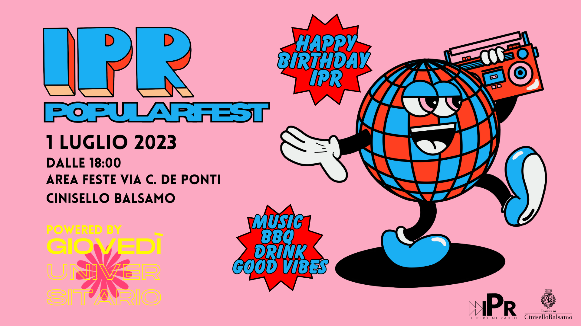 Ora, per celebrare il secondo compleanno, noi de Il Pertini Radio abbiamo deciso di organizzare IPR POPULAR FEST, un festival musicale che sabato 1 luglio, dalle 18:00 fino a mezzanotte, proporrà le performances di numerosi artisti che hanno accompagnato il percorso della radio in questi 2 anni di attività. Il tutto sarà condito con la presenza di stand, barbecue e giochi di vario genere, che metteranno in palio anche prodotti ufficiali targati IPR.