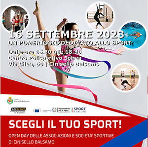 Sabato 16 Settembre presso il Centro Polisportivo Scirea di Via Cilea,50 si terrà la terza edizione dell’Openday dello Sport, dove le principali associazioni e società sportive della città allestiranno banchetti informativi, presenteranno esibizioni e dimostrazioni delle proprie discipline.