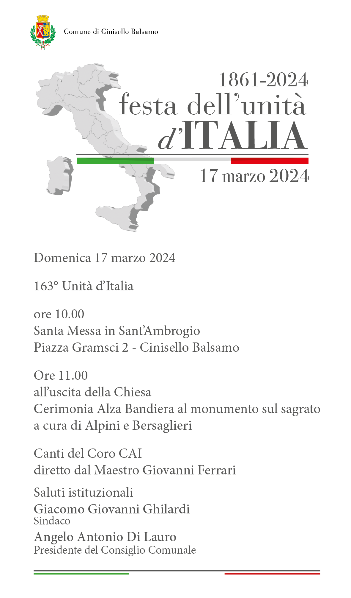 La cittadinanza è invitata a presenziare e ad esporre il tricolore.