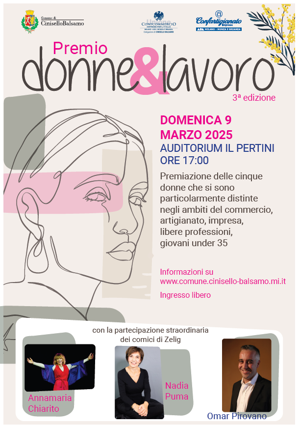 Anche quest’anno l’Amministrazione Comunale di Cinisello Balsamo – Assessorato al Commercio e Attività Produttive, intende valorizzare il protagonismo delle donne in ambito professionale, attribuendo il premio “Donne&Lavoro” alle cinque donne che si sono distinte nei seguenti ambiti: