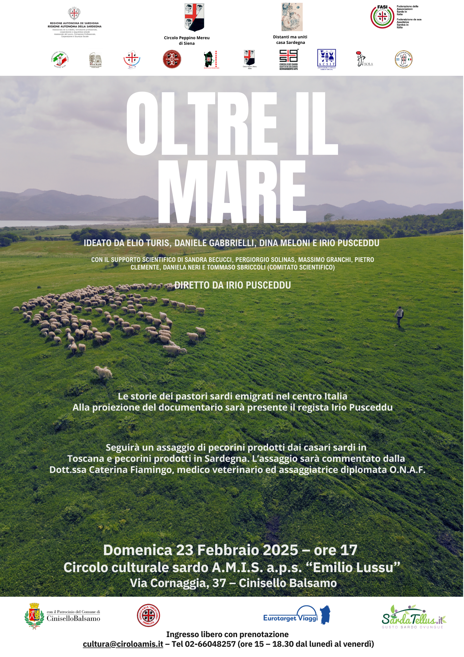 Dagli anni ’50 e fino all’inizio degli anni ’70 alcuni allevatori sardi hanno deciso di lasciare la loro Isola e di attraversare il mare con i lori armenti per cercare nuove opportunità in Toscana. Sull’onda del loro esempio, negli anni ’80 altri pastori si sono trasferiti in Abruzzo, nel Lazio ed in Umbria. Il documentario OLTRE IL MARE racconta le loro storie attraverso testimonianze sincere e appassionate, raccolte dal regista Irio Pusceddu. I protagonisti di questa diaspora parlano delle difficoltà iniziali e di come gradualmente siano riusciti ad inserirsi in un ambiente ed in comunità così diverse da quelle della Sardegna, pur mantenendo vive le tradizioni e le consuetudini della loro terra d’origine. Sarà presente il regista Irio Pusceddu.