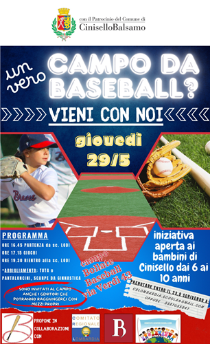 Il Comune di Cinisello Balsamo, al fine di incentivare la pratica di una pluralità di sport, ha concesso il patrocinio alla FIBS (Federazione Italiana Baseball Softball) per l’organizzazione dell’evento “Un vero campo da baseball” previsto per il giorno 29 maggio 2025.