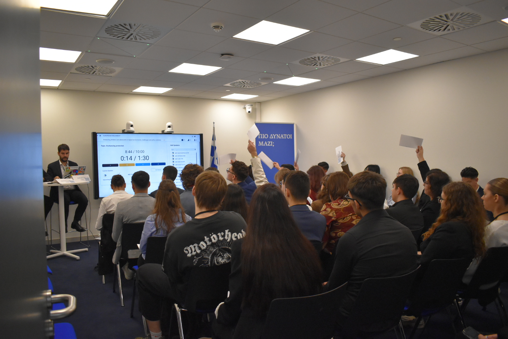 Il secondo giorno è stato dedicato a una simulazione parlamentare. I partecipanti hanno potuto mettersi nei panni di decisori, discutendo temi reali e lavorando insieme per trovare soluzioni condivise. Riproducendo il funzionamento di un parlamento, hanno imparato come operano i processi democratici, come si negozia e come si costruisce un consenso. Un’esperienza che ha rafforzato anche le loro capacità comunicative e il senso di responsabilità come cittadini attivi.