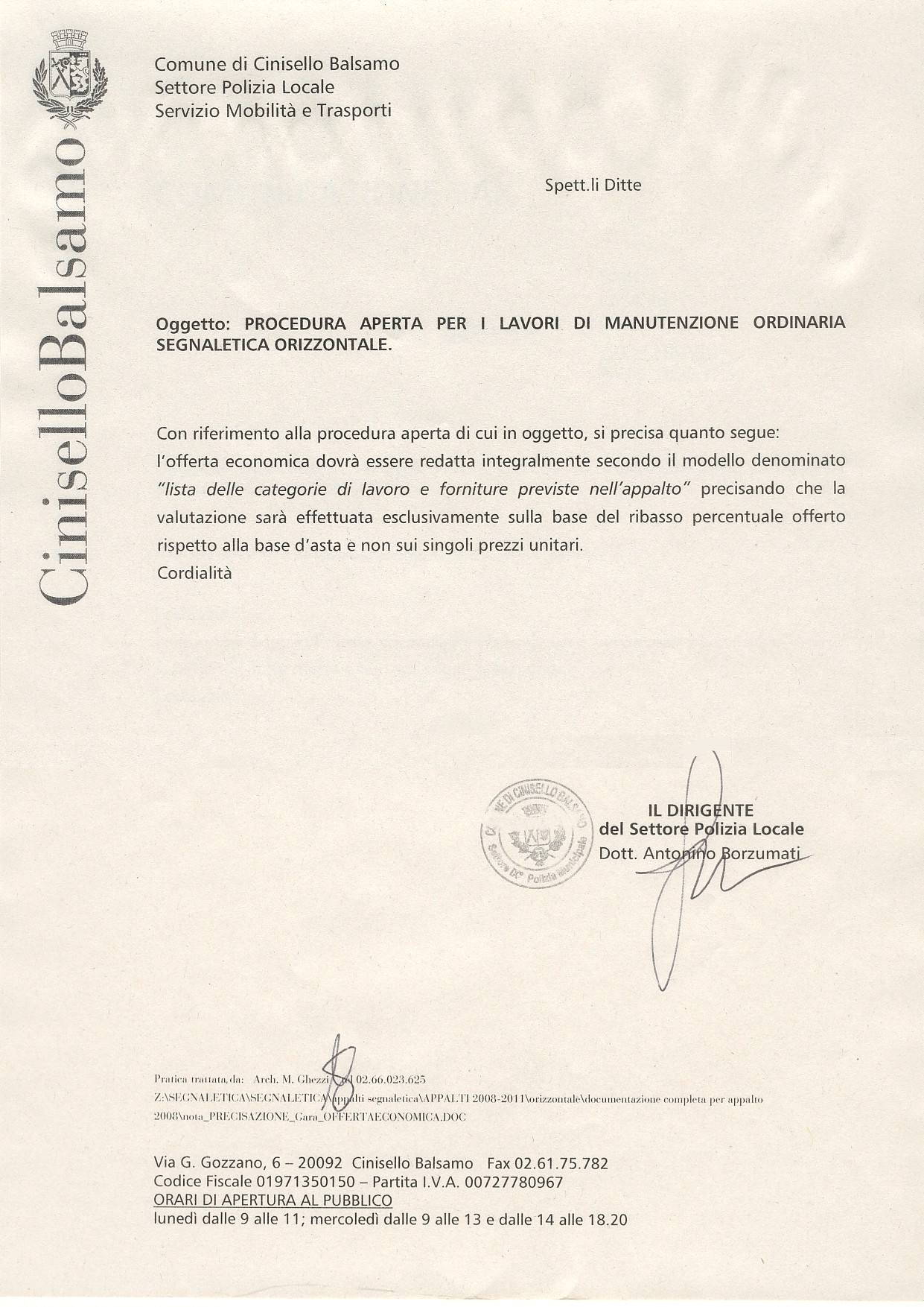 Descrizione: Lavori di manutenzione ordinaria triennale della segnaletica orizzontale su tutto il territorio comunale - annualità 2009/2012 - codice CIG 02315855FB