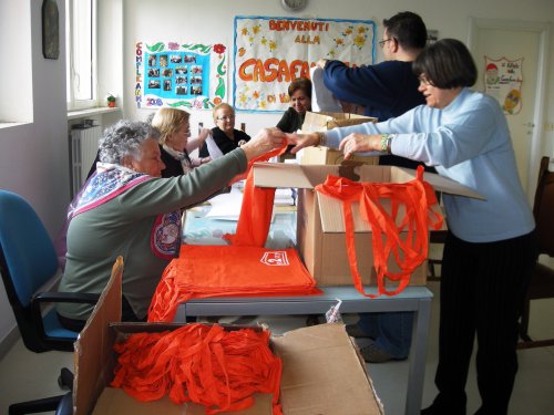 I Kit del ’Cinisellese sostenibile’ distribuiti al ’Palazzone’ sono stati confezionati grazie all’aiuto delle signore della CasaFamiglia, che hanno trovato interessante e coinvolgente l’iniziativa, come si può osservare dalle immagini.