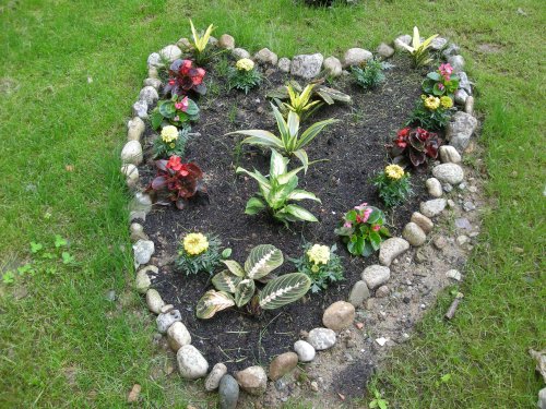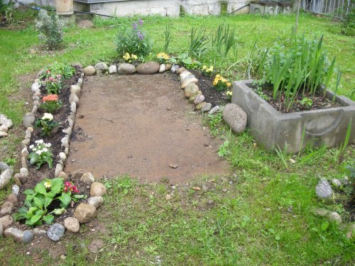Grazie alla creatività di un inquilino, fantasiose decorazioni floreali rendono più gradevole un anfratto di cortile.